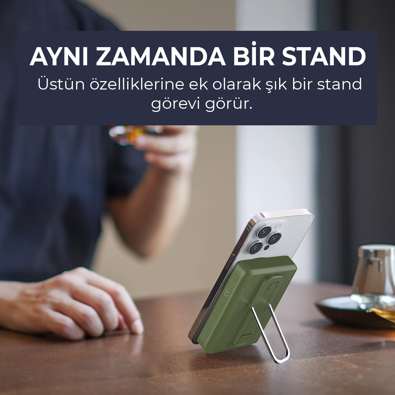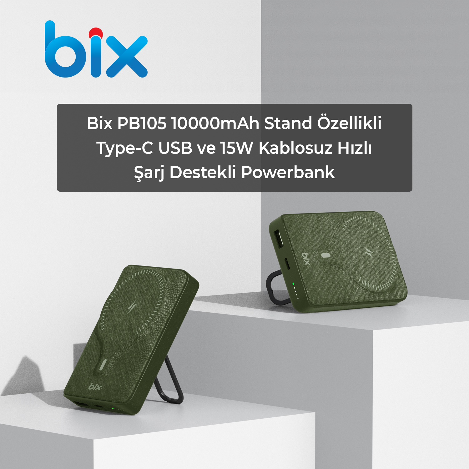 Bix PB105 10000mAh Stand Özellikli PD20W Type-C USB-A ve 15W Kablosuz Hızlı Şarj Destekli LED Göstergeli Powerbank, tüm akıllı cihazlarınızı USB ve Type-C çıkışlarından şarj etmenin yanı sıra, kablosuz şarj desteğine sahip olan mobil cihazlarınızı da bir kabloya ihtiyaç duymadan daha hızlı şarj etmenize olanak sağlar. Tek elle tutulabilen ve bir avca sığacak şekildeki kompakt tasarımı sayesinde cebinize veya çantanıza rahatlıkla sığdırabilirsiniz. Android ve iPhone telefonlarla tam uyumlu çalışmaktadır. İstendiğinde stand olabilen yapısı sayesinde bir telefon tutucu görerek masanızda telefon ya da aynı boyutlardaki tabletlerinizi güvenli bir şekilde tutar. Donanımında yer alan yerleşik akıllı çip, cihazlarınızı aşırı şarja, aşırı deşarja, aşırı akımlara, kısa devrelere veya aşırı ısınmaya karşı korumaktadır.
