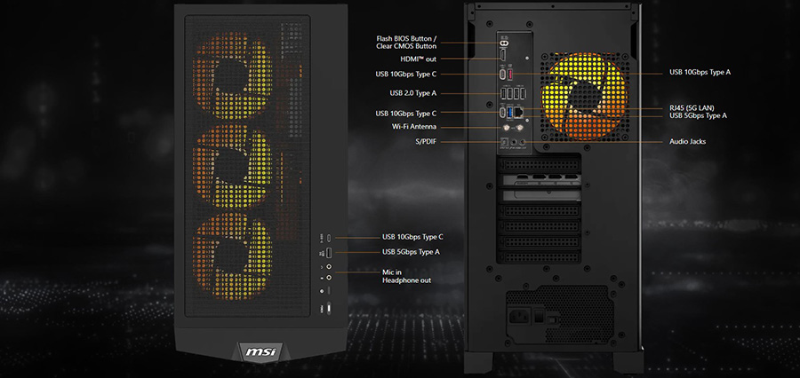 MPG INFINITE Z3 , özelleştirilebilir RGB ışıklandırmaya sahiptir. Kasanın canlı renkleri temperli cam panel sayesinde gururla sergilenirken dış detayları ile oyun deneyiminizi baş döndürücü bir görsel şölene dönüştürür. Ambient Link teknolojisi sayesinde sistemin tüm ışıklandırması senkronize halde çalışır ve hem tarzınızı, hem de oyun deneyiminizi sürükleyici bir atmosferle çevreler.