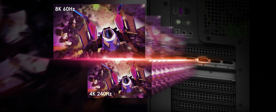 MPG Infinite Z3 en yeni DP 2.1 standardını destekler. Ultra yüksek çözünürlüklü gelişmiş grafikler ile nefes kesen 8K@60Hz veya 4K@240Hz görüntüleri capcanlı renkler ve keskin detaylarla izleyebilirsiniz.